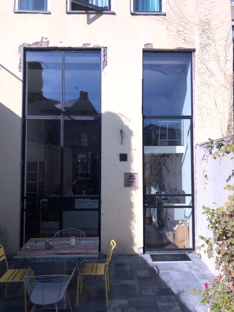 Prachtig atelier met veel glas en dus veel daglicht. Drie deuren kunnen geopend worden.